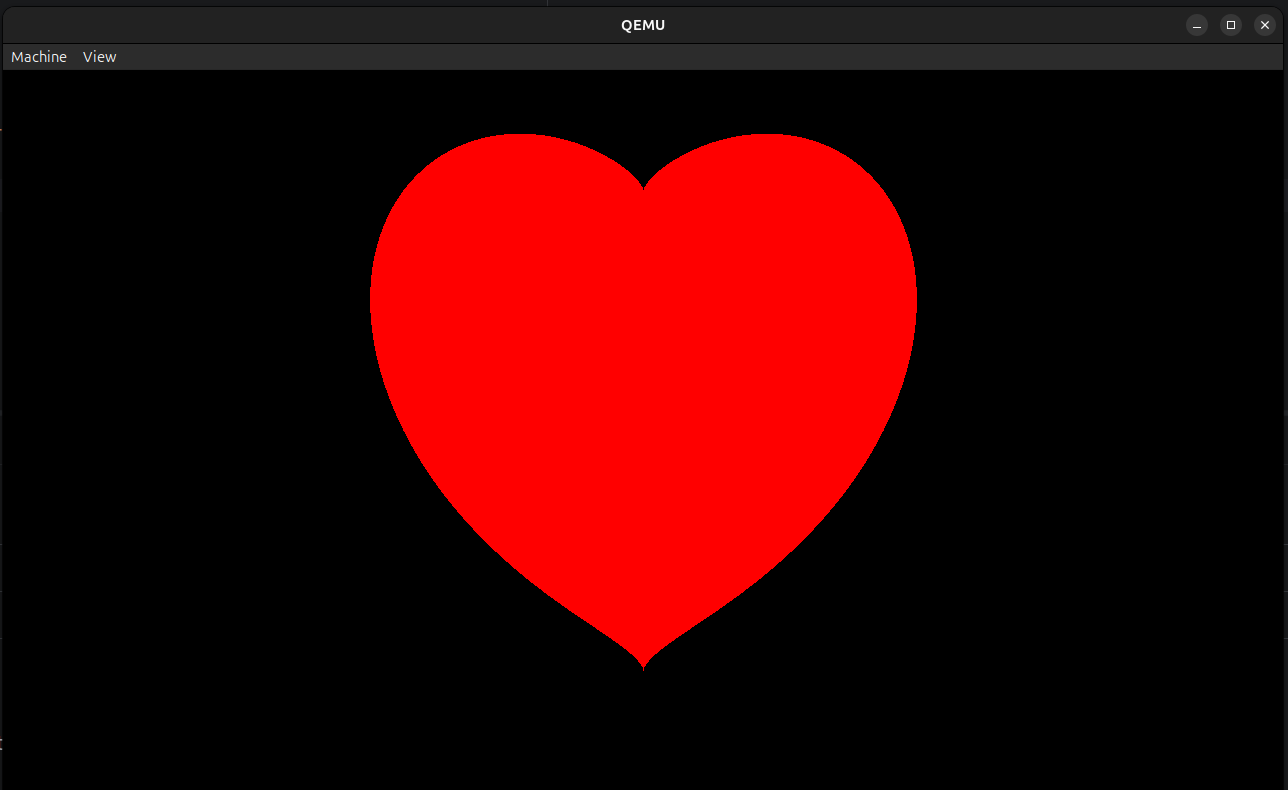 使用cargo run bios启动测试程序,顺利的话你可以在qemu虚拟机中看到一个爱心。