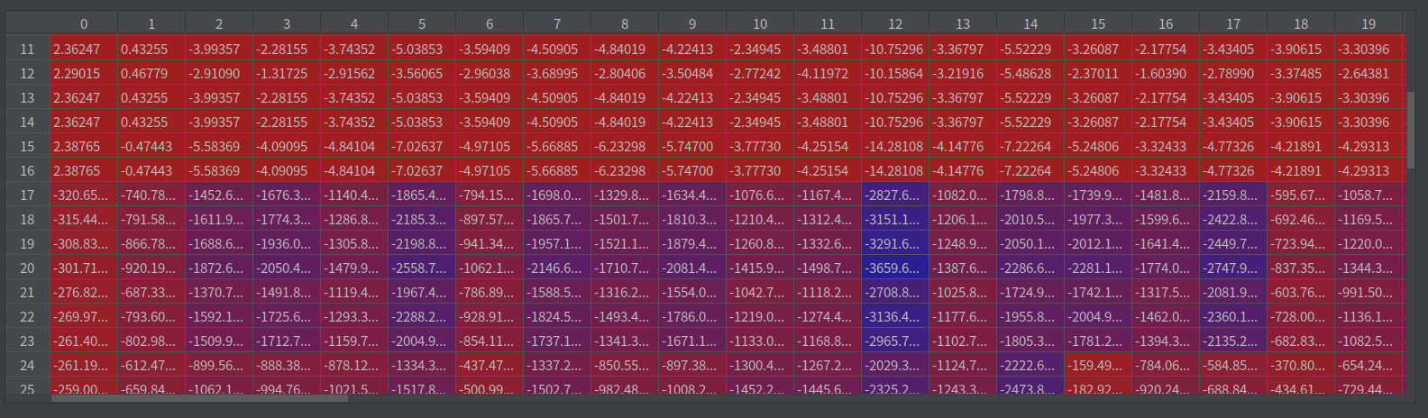 由于采用的是动态图编写的代码,因此可以通过一步一步的跟踪代码,来诊断错误。从loss一步步向上查找问题,发现target_logits中存在非常小的数据(负数),如下面的图: